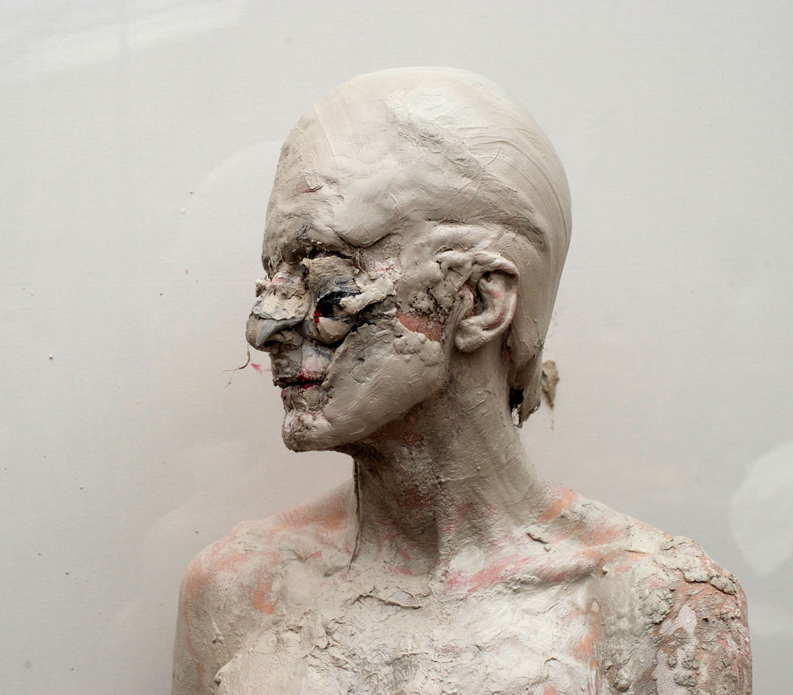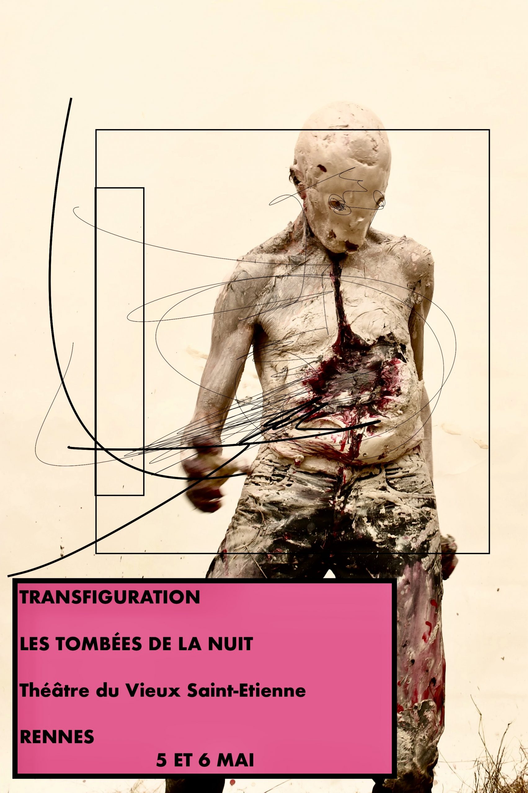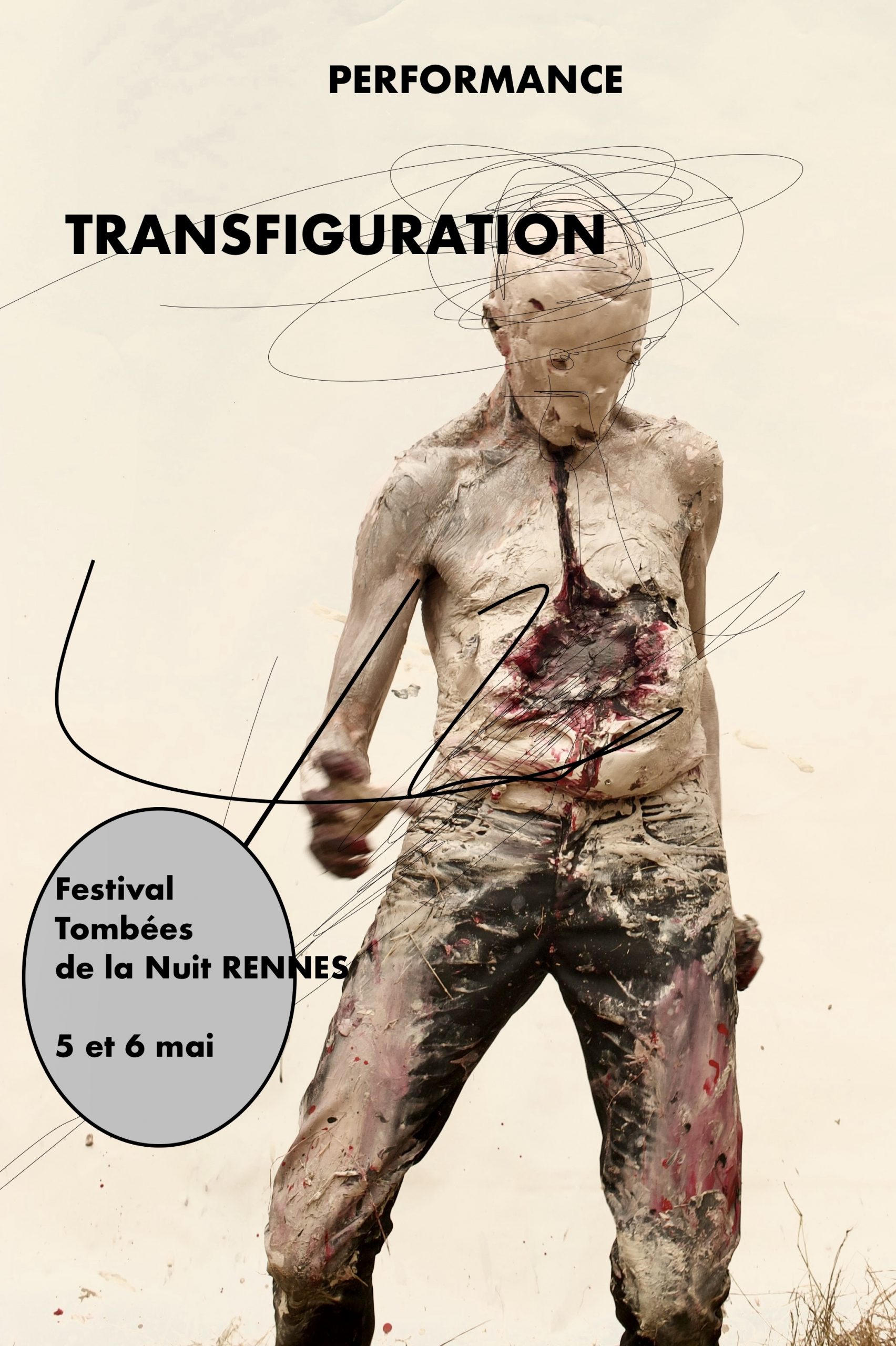 Originally trained as a biologist, Olivier de Sagazan turned to painting and sculpting with the ever-present idea of questioning organic life. From this passion came the idea for him, to cover his own body with clay in order to observe the resulting “object”. This experiment gave rise to the creation of a solo, « TRANSFIGURATION », in 1998, (played for over 400 times) in which we see a man gradually disfiguring himself with clay into a kind of half-man, half-beast searching beneath his masks for who he is, who is the puppeteer. The human body becomes the canvas, and time transforms into a medium.